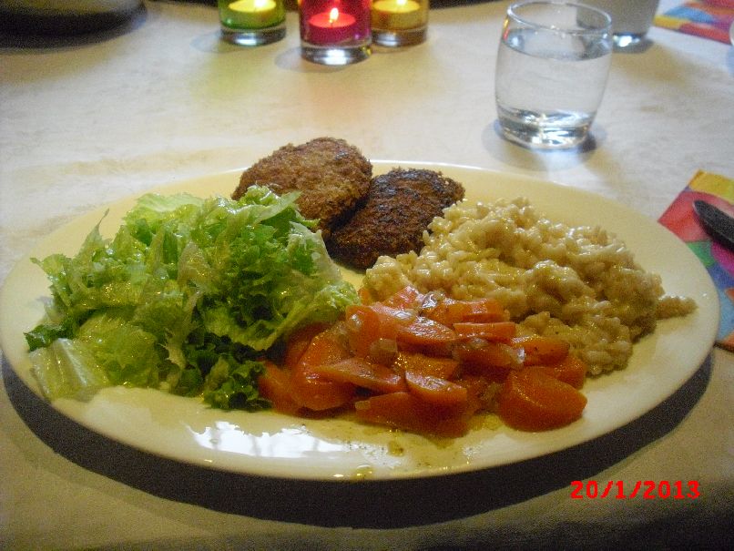 | Wagyu-Frikadelle mit Vanille-Möhren und Arborio-Reis-Risotto |