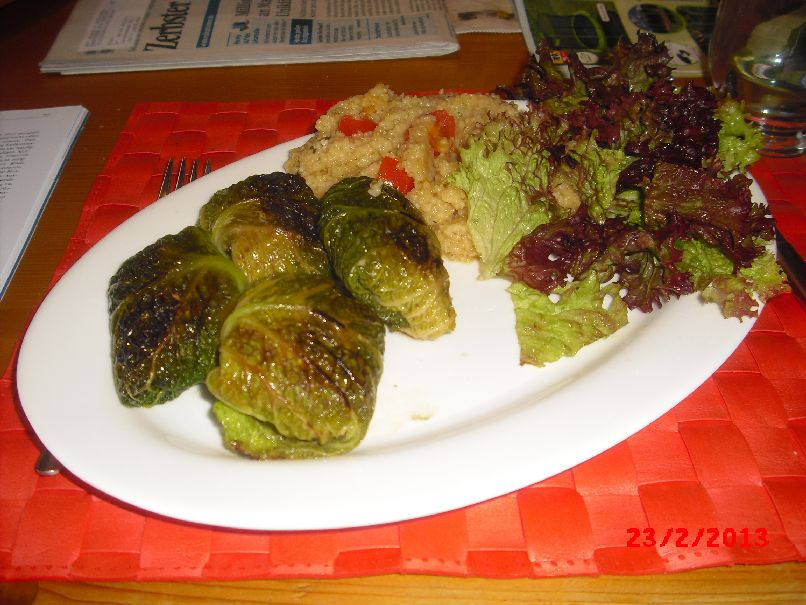 | Wirsing-Rouladen und Couscous |