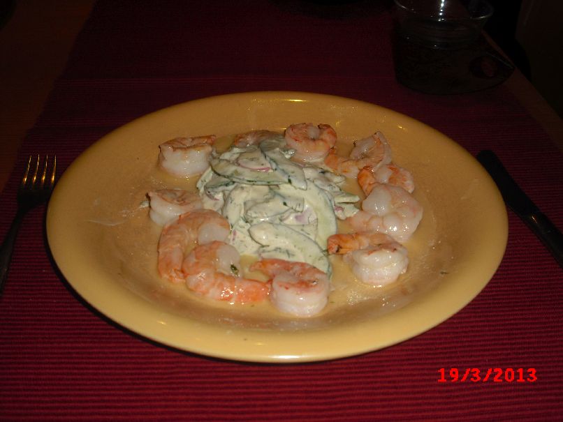 | Garnelen auf Gurken-Radieschen-Salat mit Remoulade |