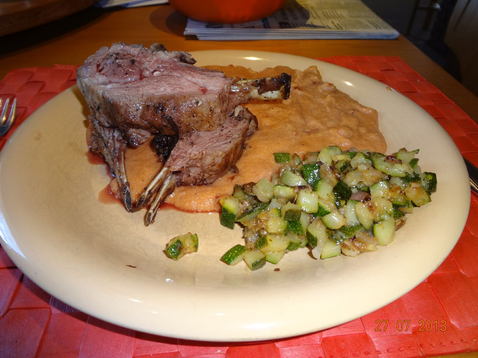 | Lamm-Karree mit Tomaten-Polenta und Zucchini |