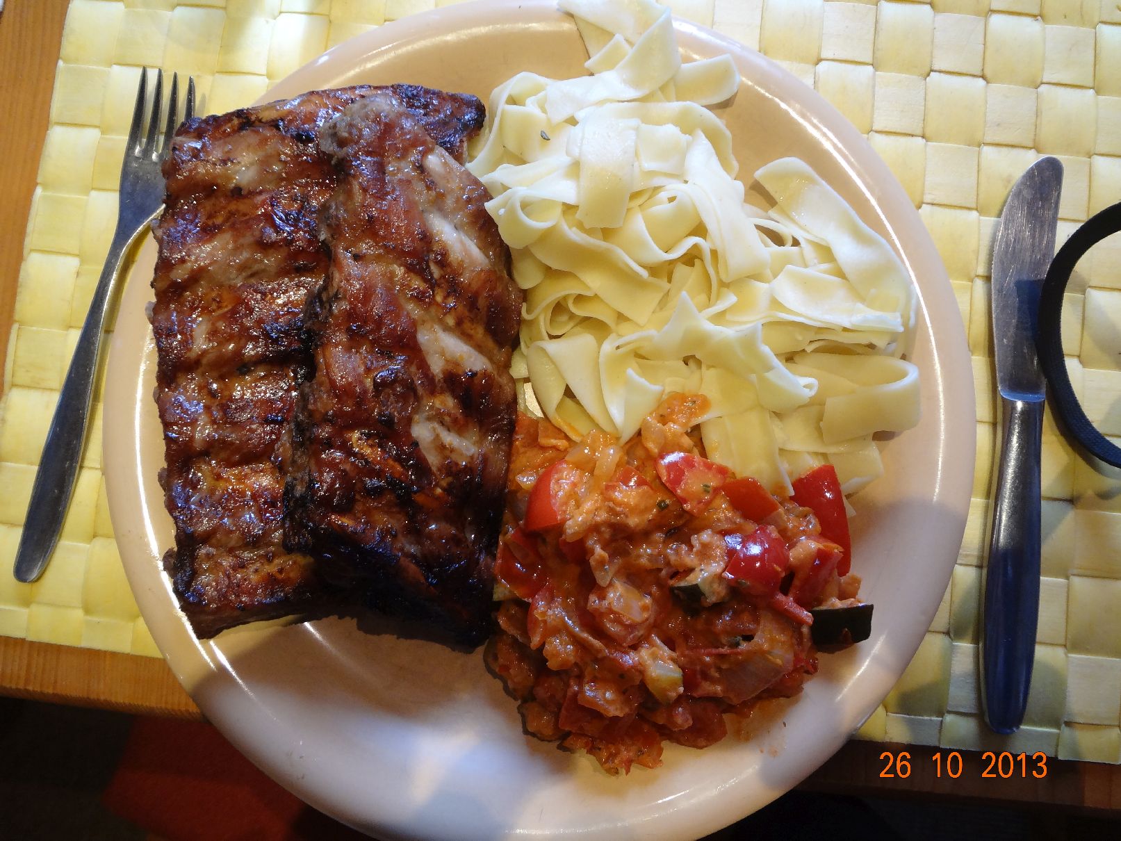 | Rippchen, Ratatouille, Bandnudeln |
