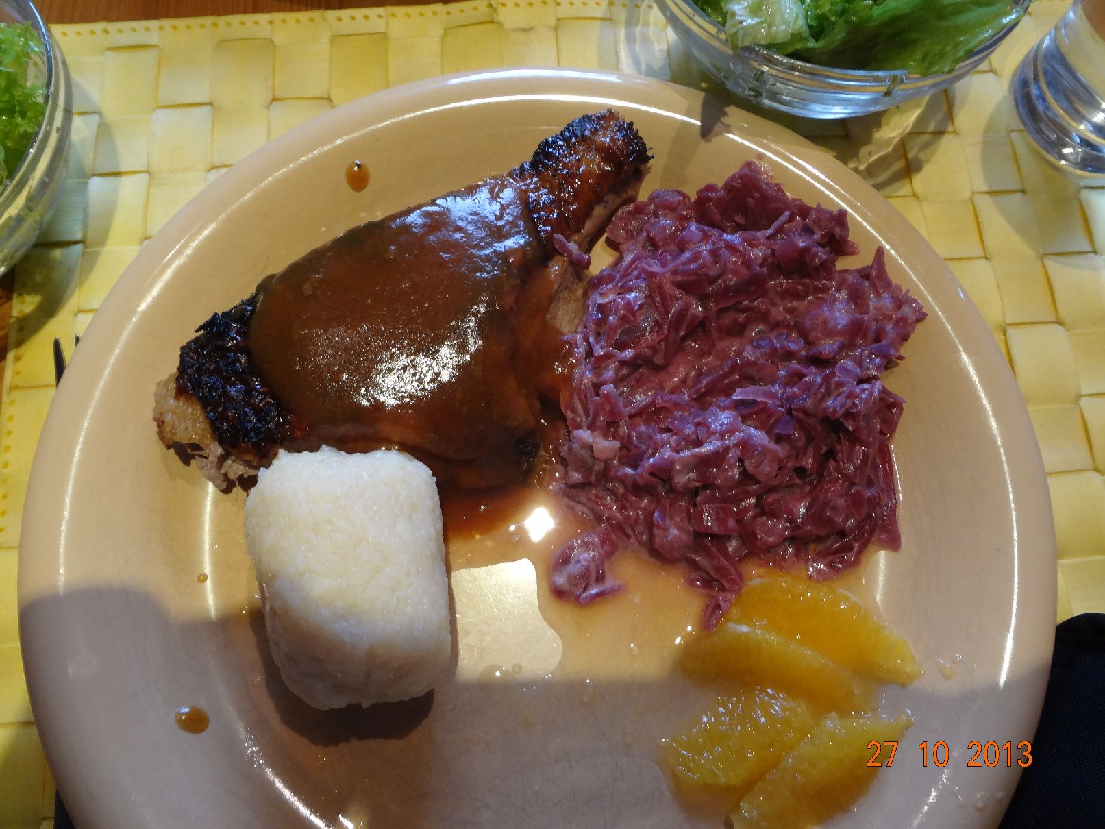 | Orangen-Ente mit Rotkohl und Semmelknödeln |