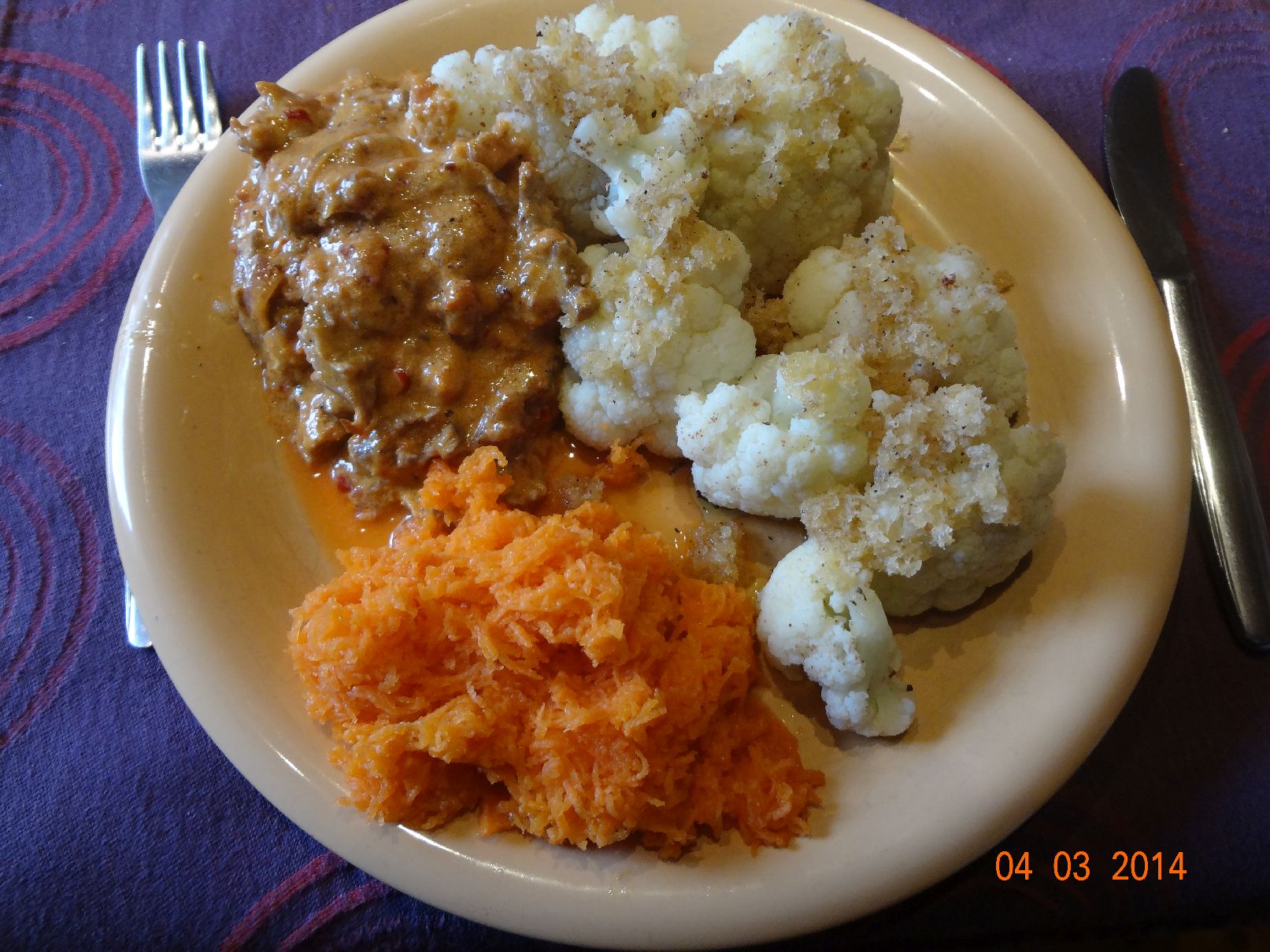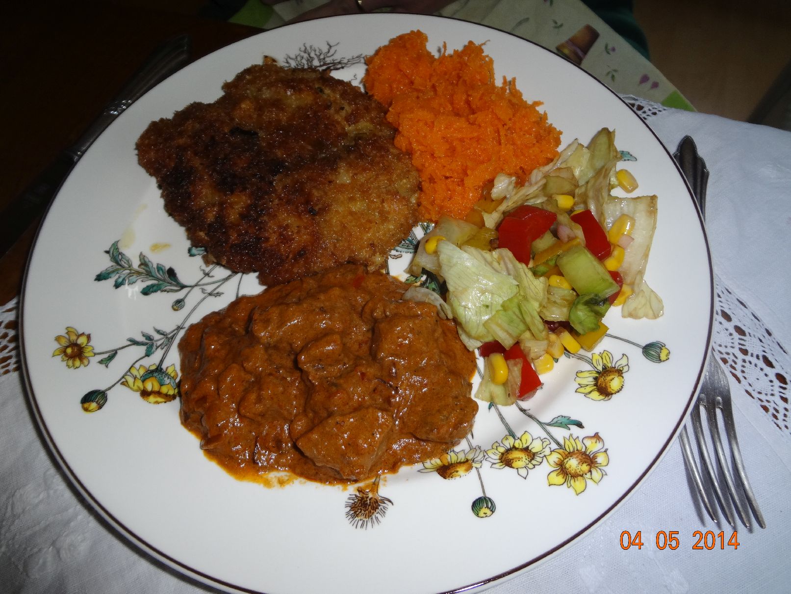 | Hähnchen-Schnitzel, Gulasch und Möhren-Salat |