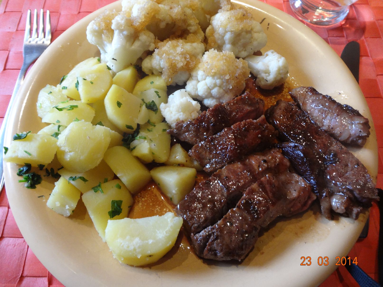 | T-Bone-Steak mit Blumenkohl und Rosmarin-Kartoffeln |