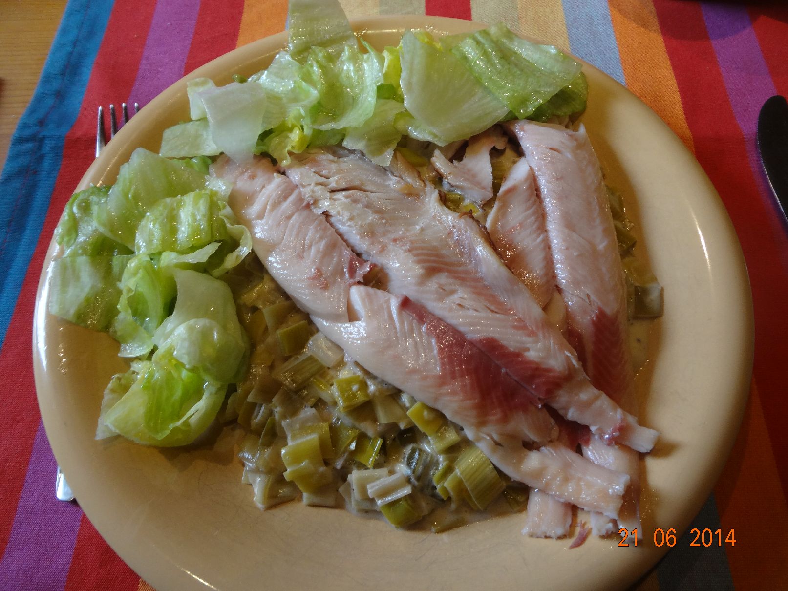 | Geräucherte Forelle auf Lauch-Gemüse |