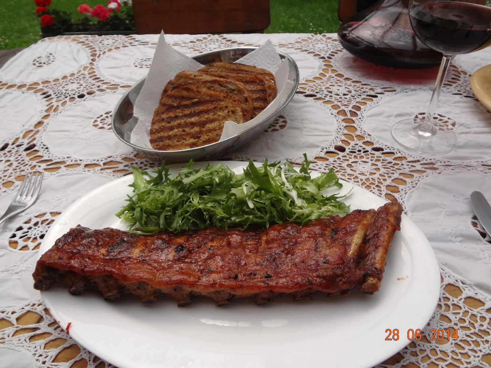 | Gegrillte Schäl-Rippchen mit Röstbrot und Frisee-Salat |