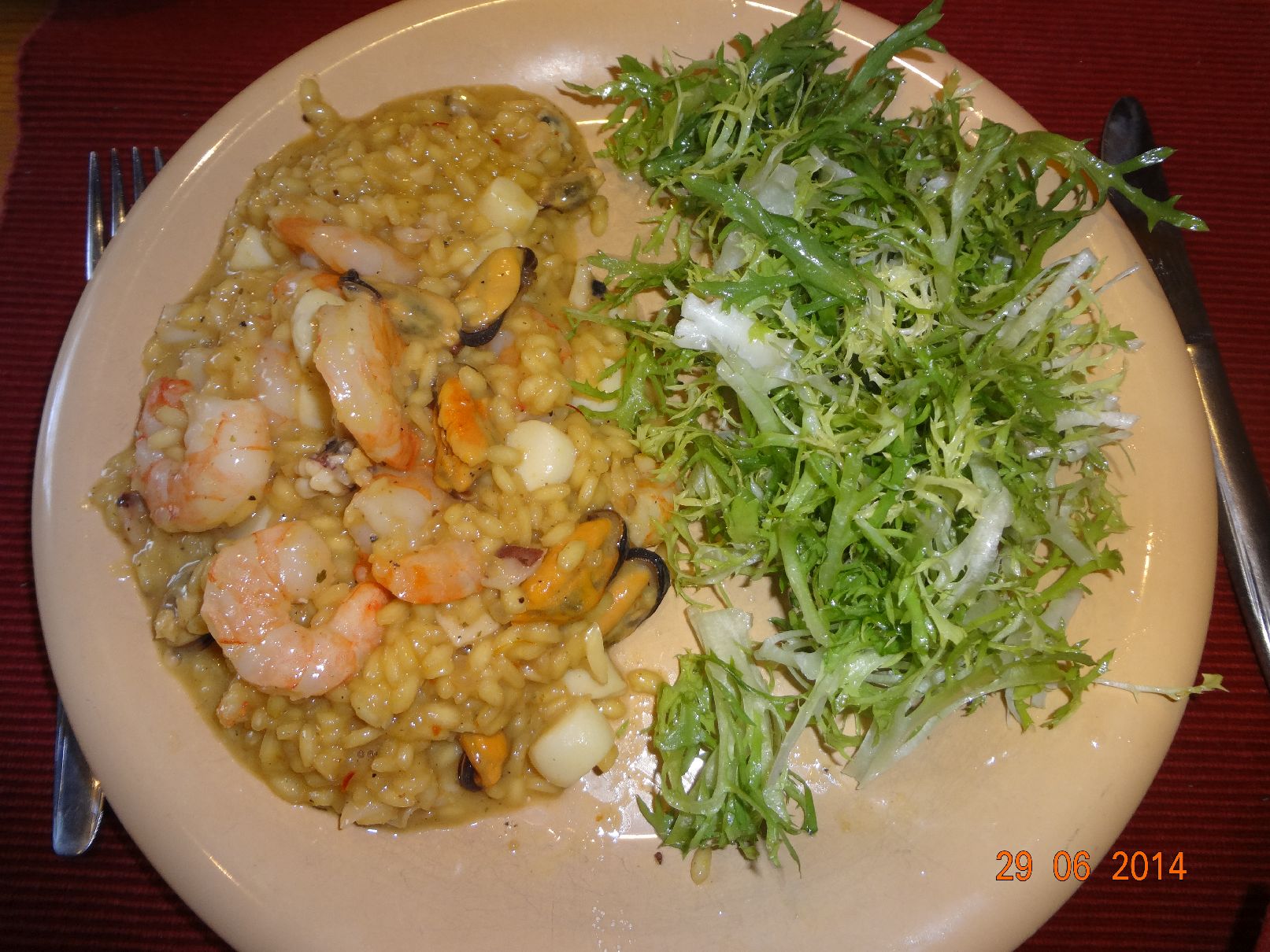 | Risotto mit Meeresfrüchten und Frisee-Salat |