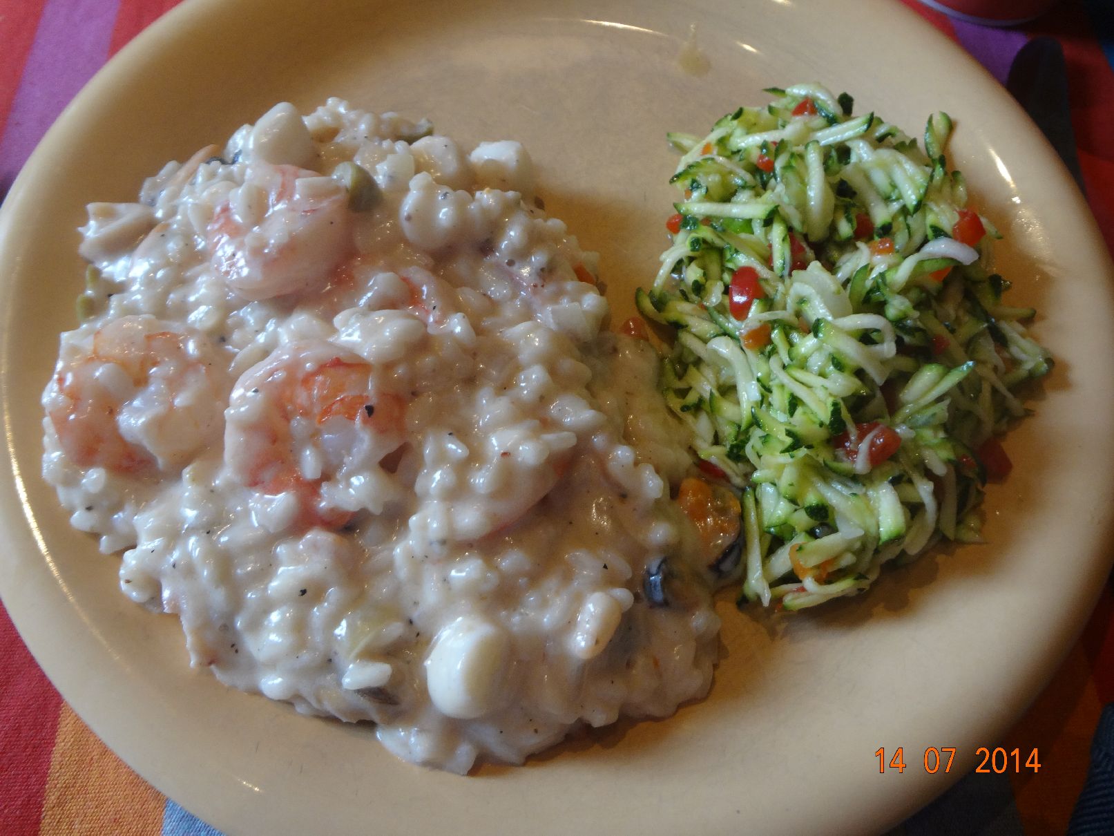 | Risotto mit Meeresfrüchten und Zicchini-Salat |