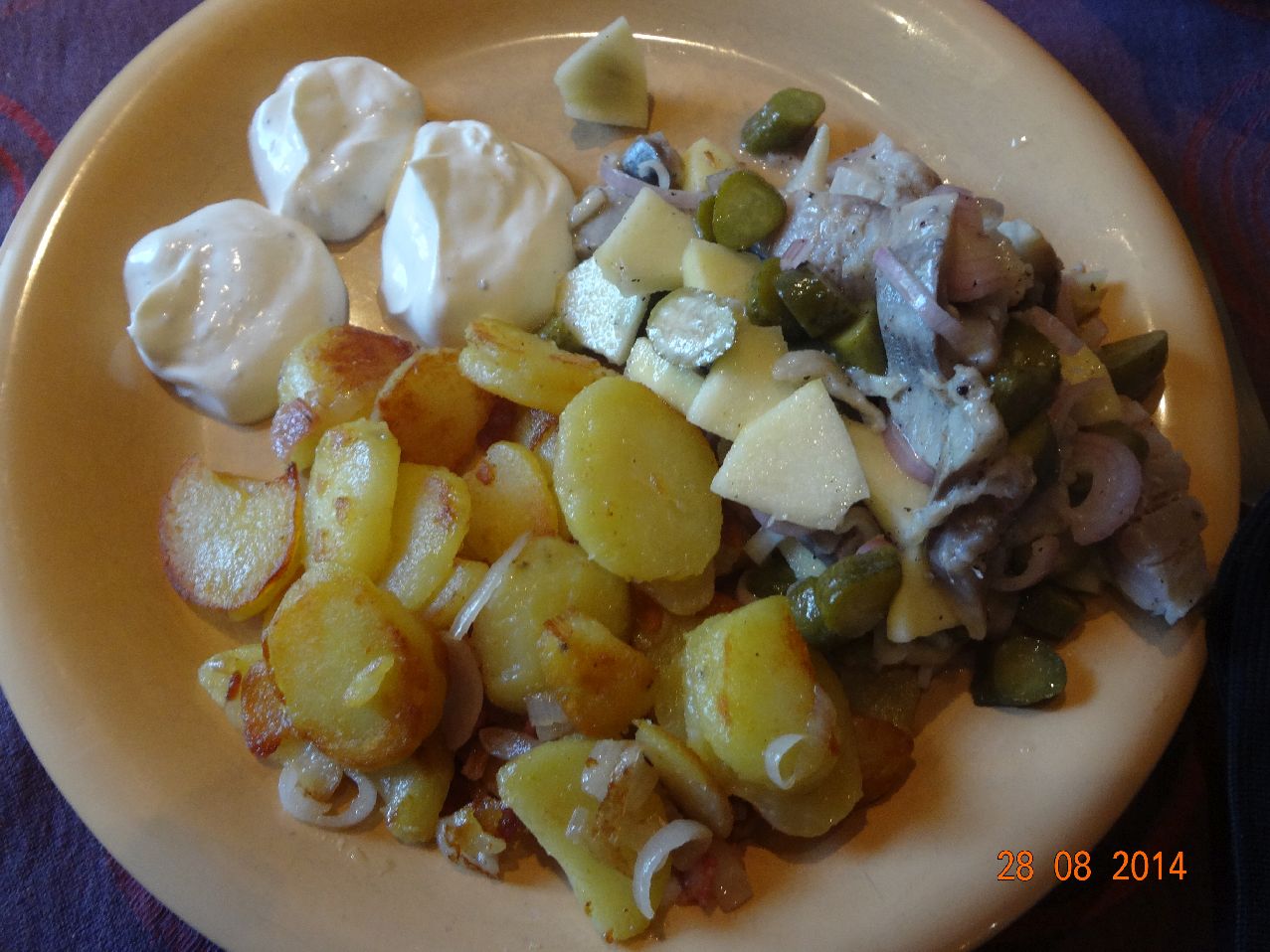 | Matjes-Filet-Apfel-Gurke-Salat und Bratkartoffeln |