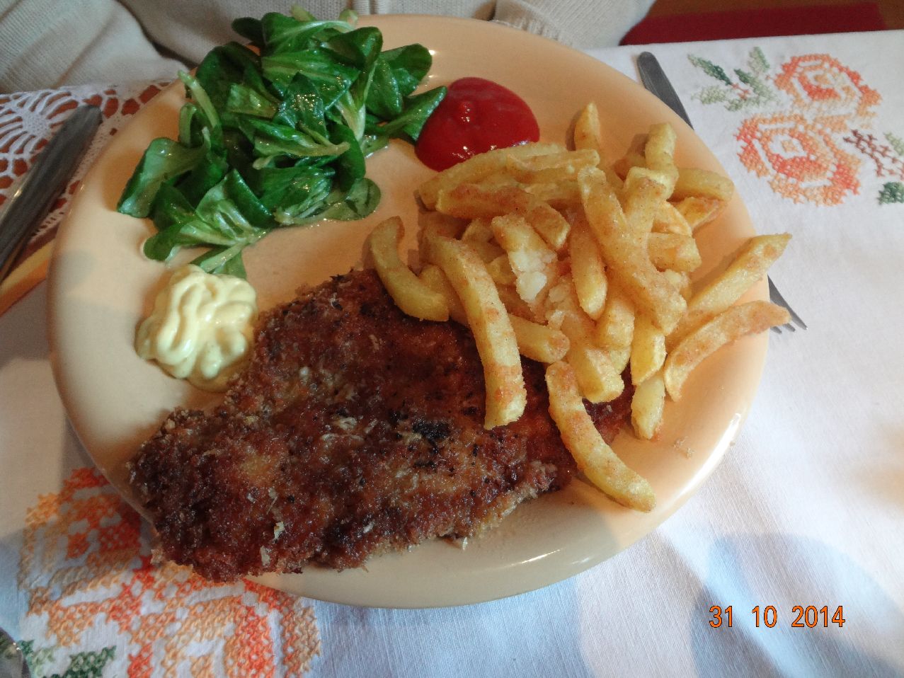 | Hähnchen-Schnitzel mit Pommes |
