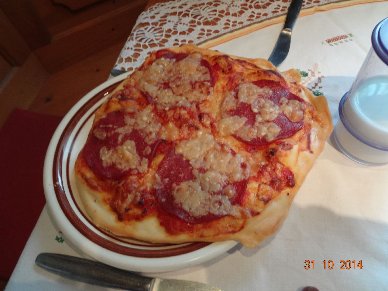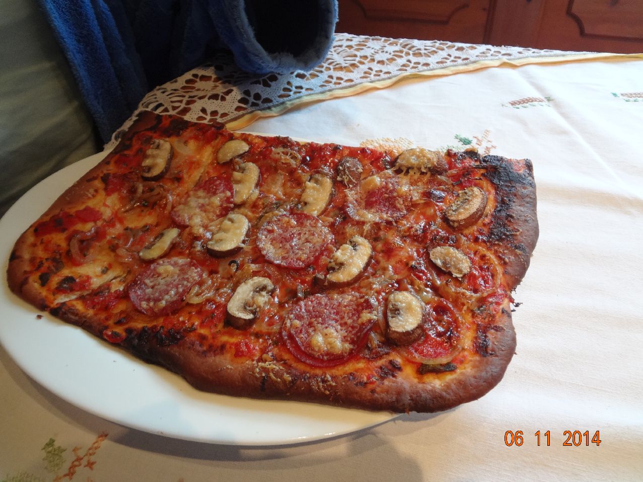 | Pizza mit Salami und Champignons |