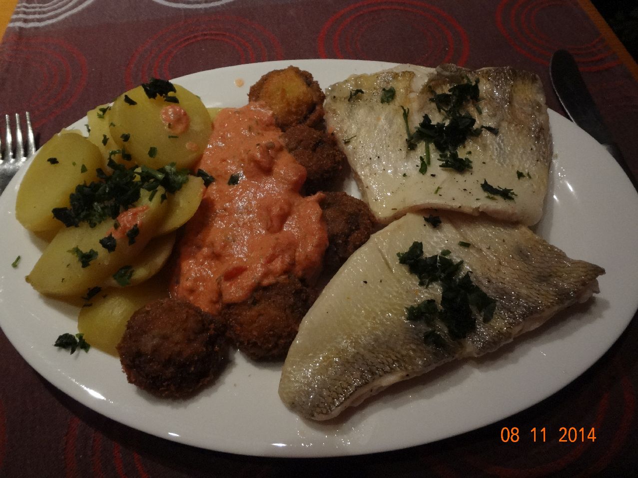 | Schlei (von Achim) mit Erbsen-Püree und Petersilien-Kartoffeln |