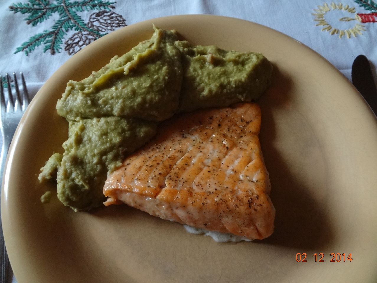 Lachs-Filet auf Erbsen-Püree |