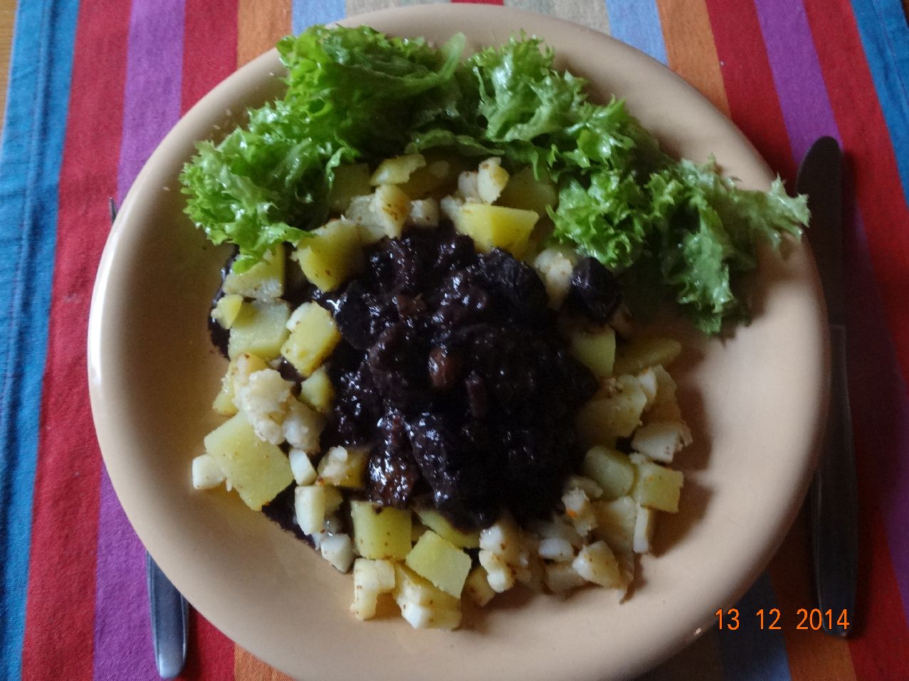 | Reste-Essen: Lamm-Gulasch, Sellerie, Kartoffeln, Speck, Salat |