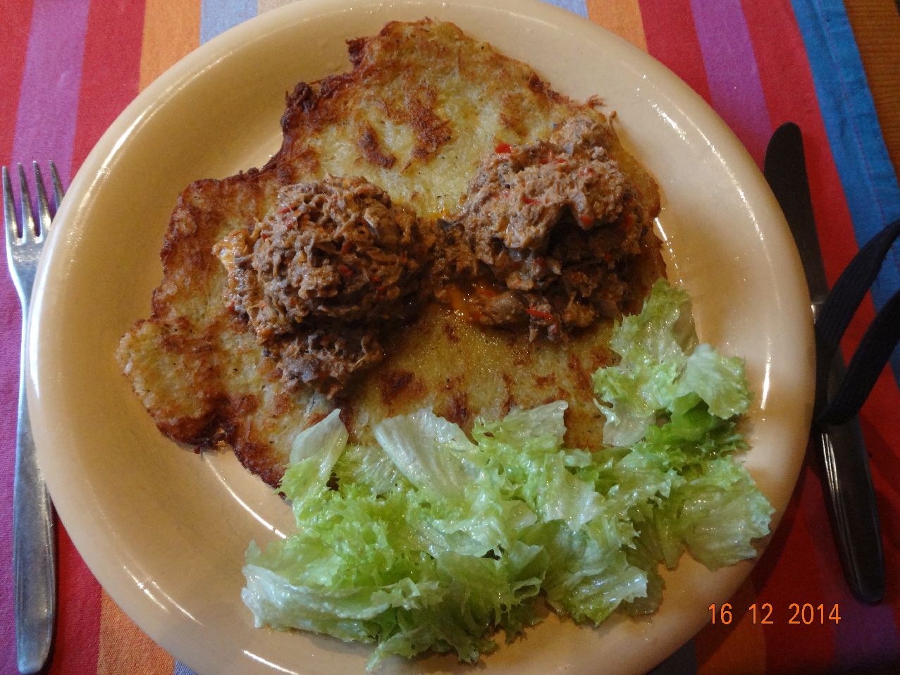 | Kartoffel-Puffer mit kleingeschnittenen Enten-Resten |