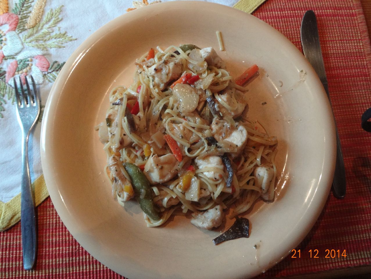 Hähnchen-Schnitzel mit selbstgemachten Spätzle und asiatischem Gemüse |