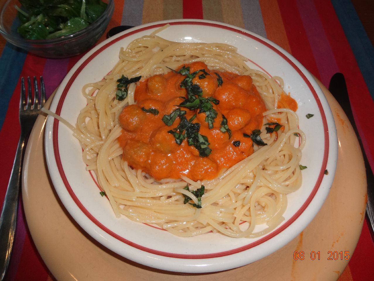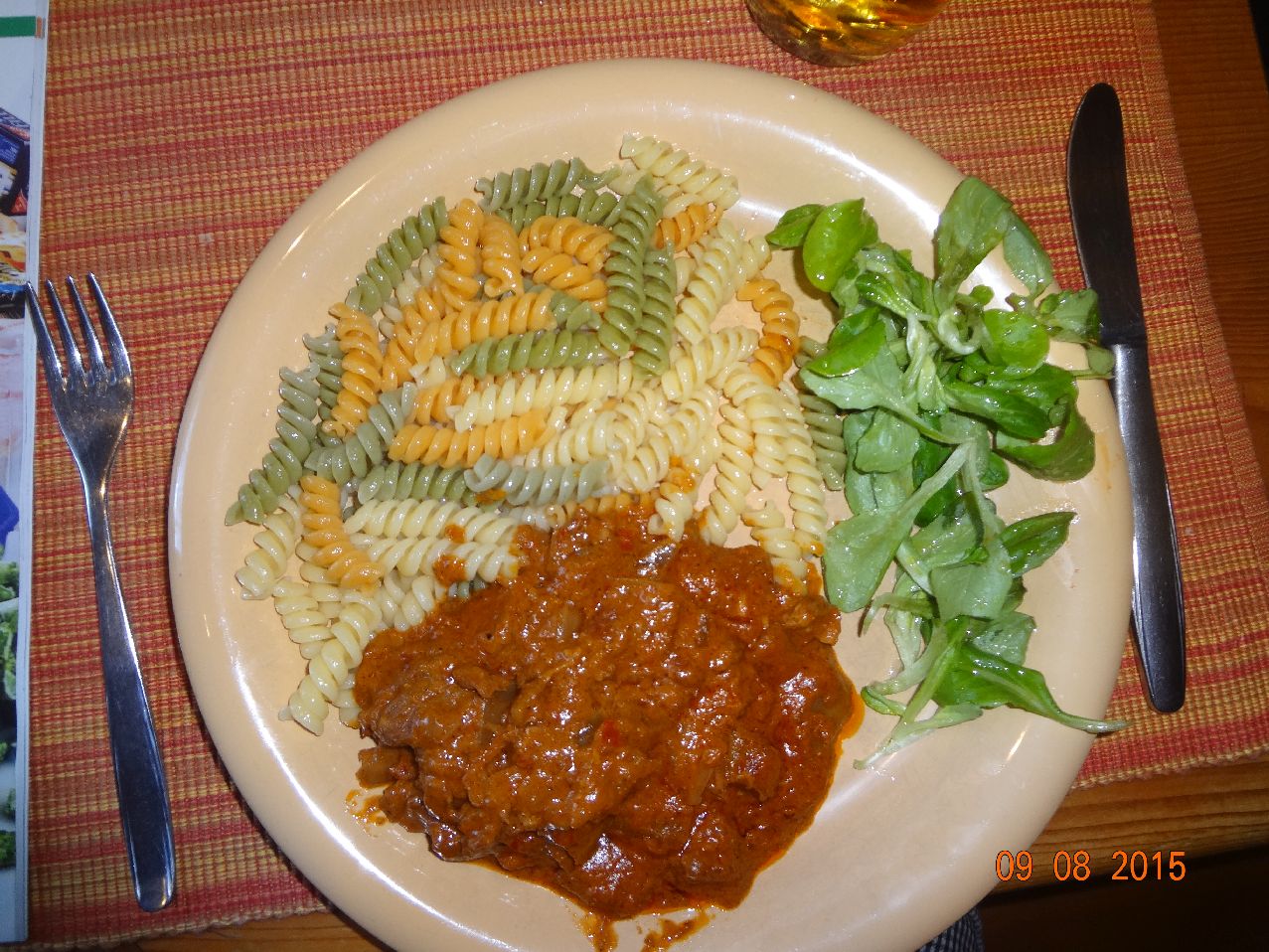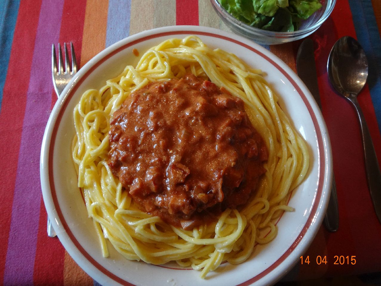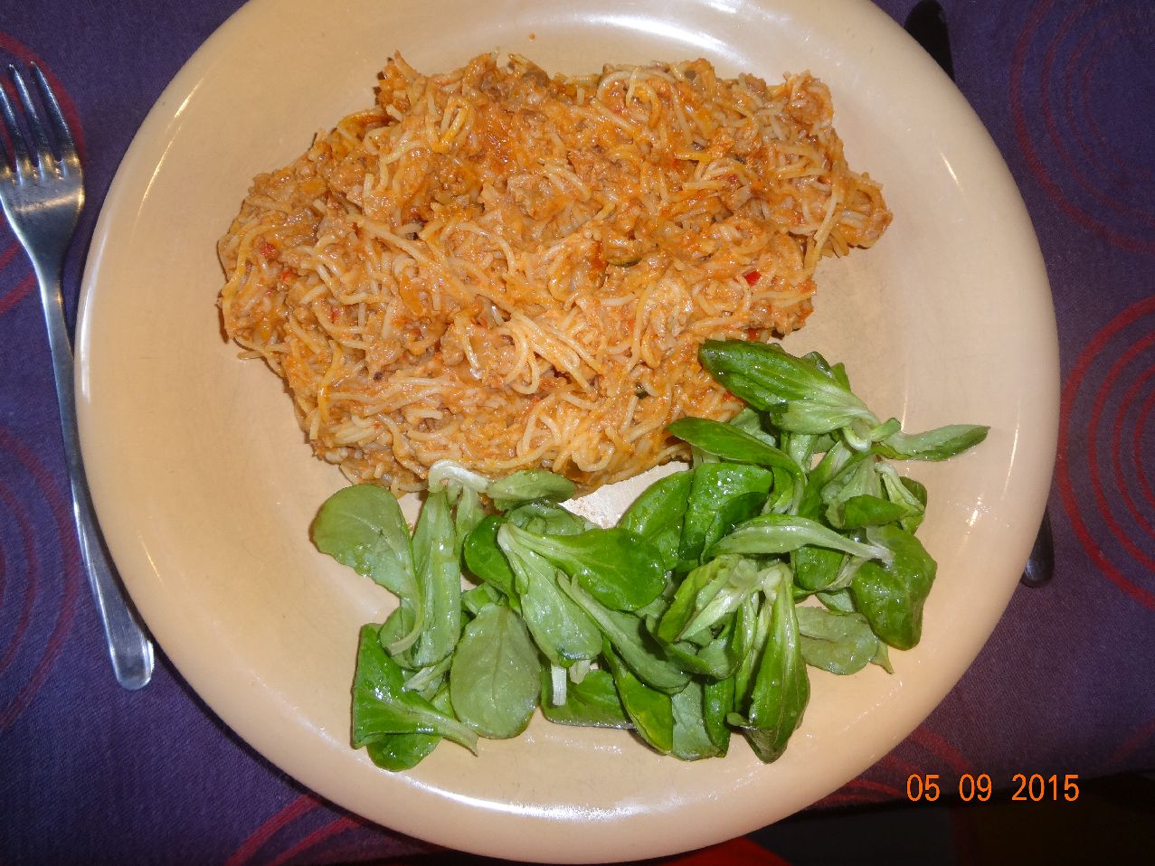 | Bolognese mit Eier-Faden-Nudeln und Feld-Salat |