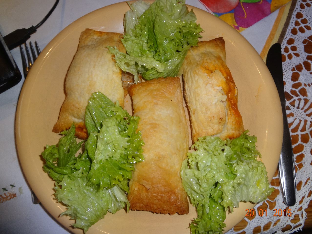 | Hackfleisch im Blätterteig und Lollo-Bionda-Salat |