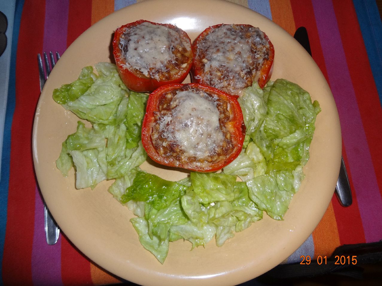 | Gefüllte Paprika und Eisberg-Salat |