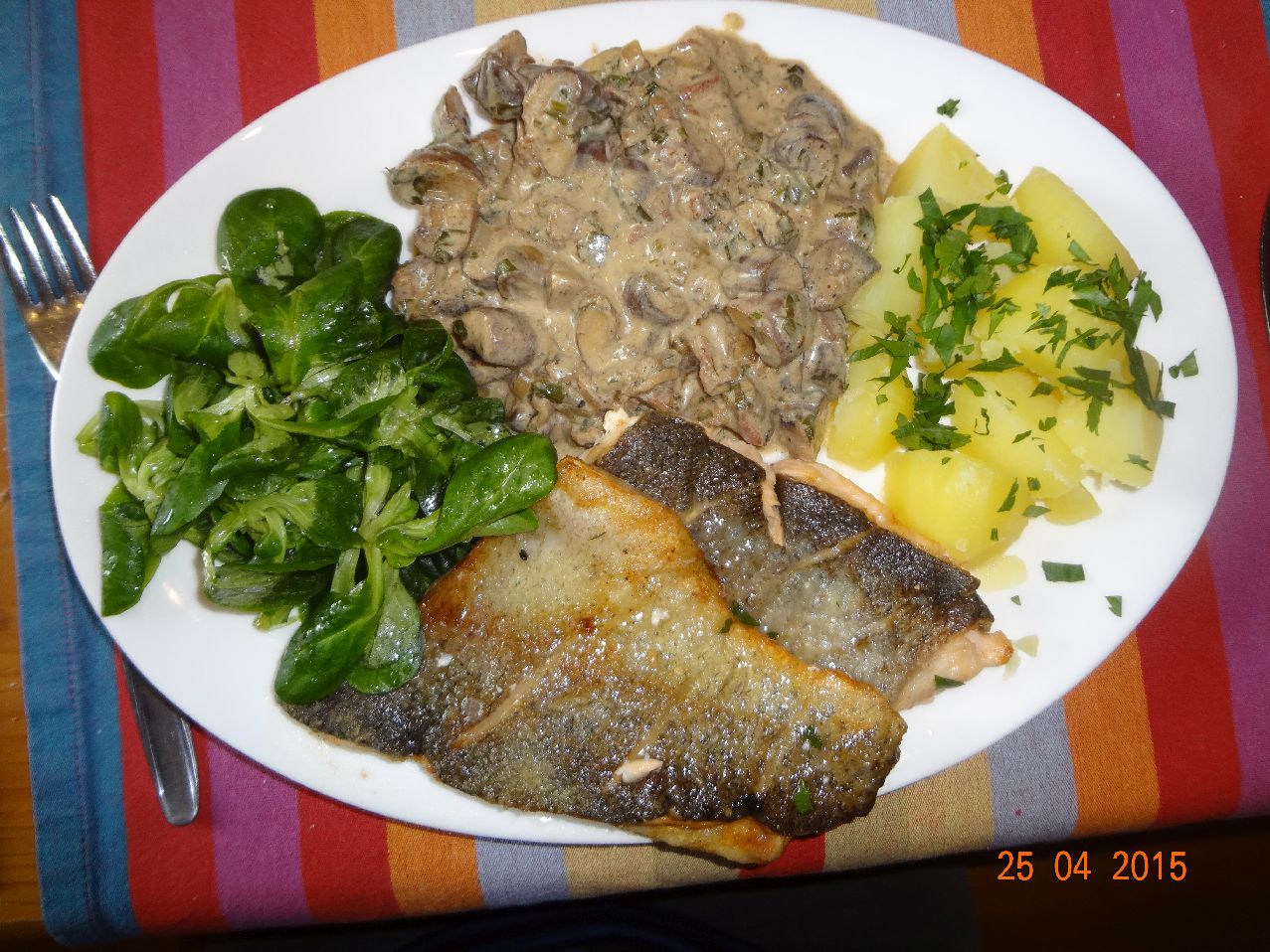 | Doraden-Filet mit Pilzen und Würzkartoffeln |