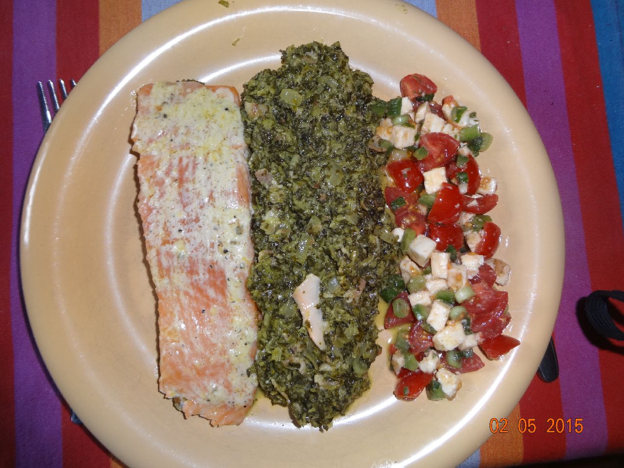 | Lachs-Filet an Grünkohl und Tomate-Mozarella-Salat |