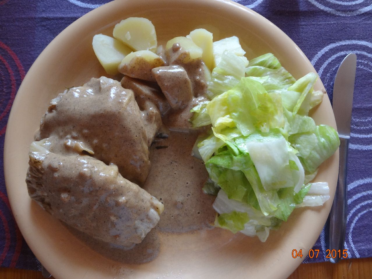 | Cordon bleu vom Hähnchen-Schenkel, selbstgemachter Kartoffel-Salat |