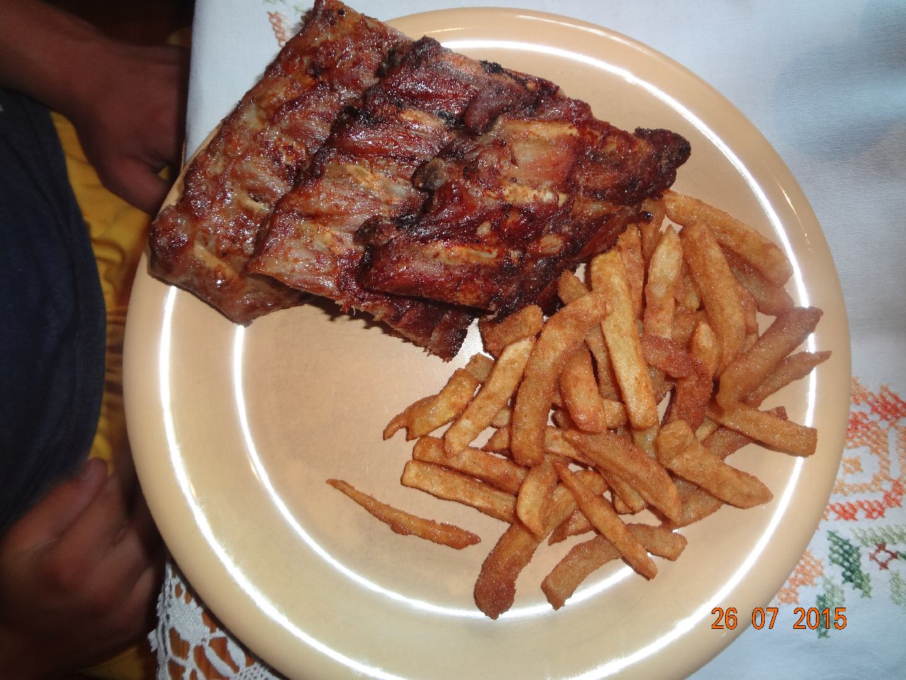 | Gegrillte Rippchen und selbstgem Pommes frites |