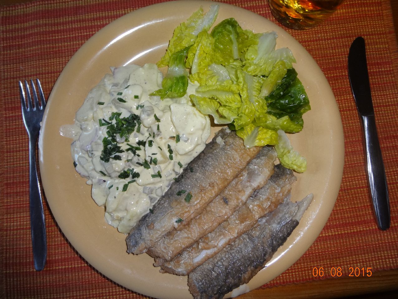 | Brathering mit selbstgemachtem Kartoffel-Salat, Mini-Romana-Salat |