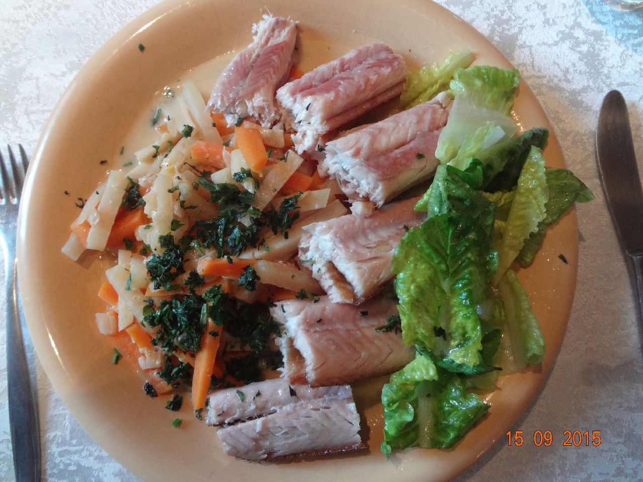 | Forelle Müllerin, Spargel und Möhren-Salat (*) |