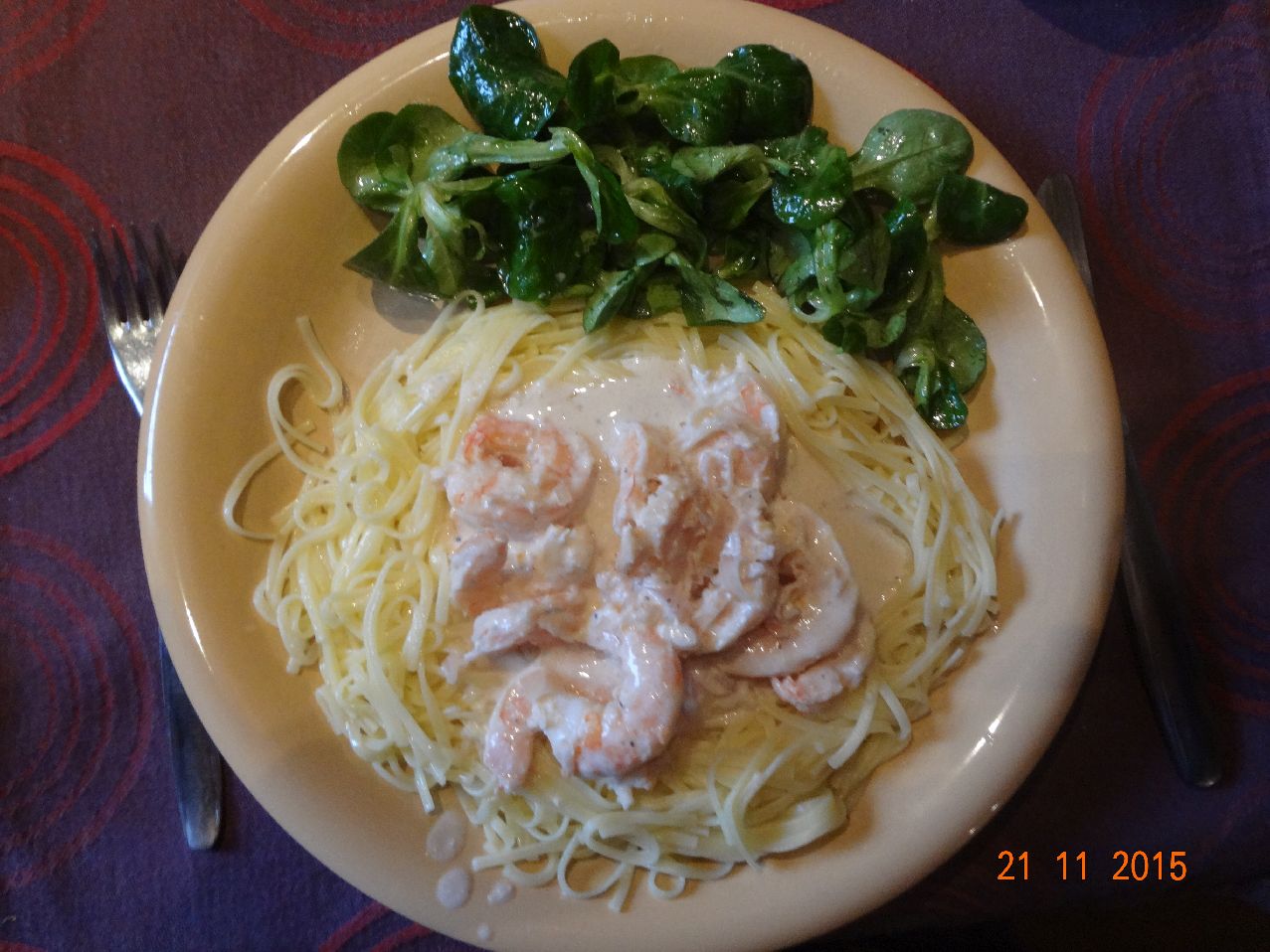 | Pasta mit Garnelen in Weißwein-Käse-Soße (*) |