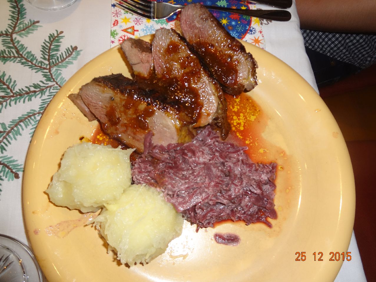 | Zerlegte Orangen-Ente, Rotkohl und Thüringer Klöße |
