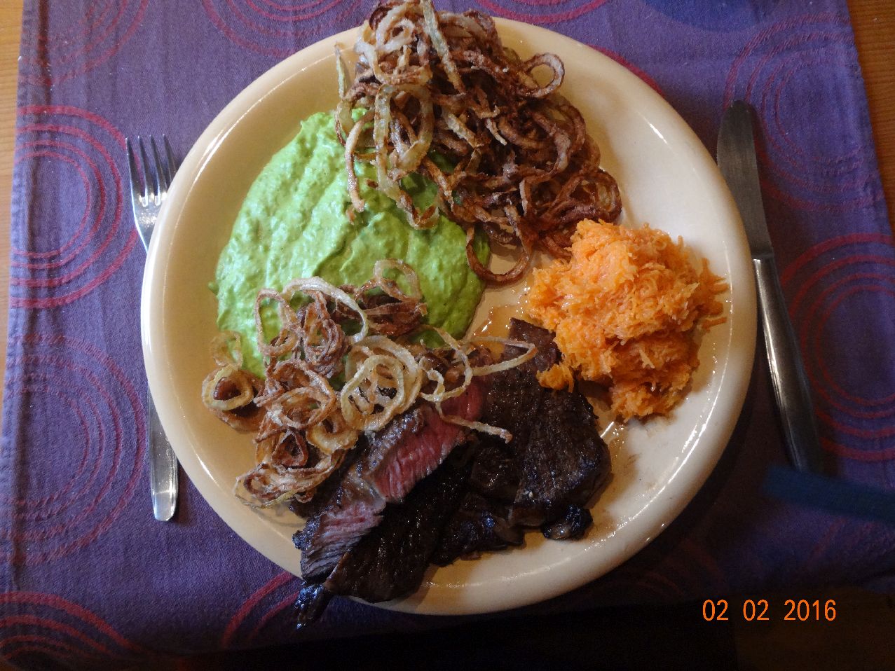 | | Landnudeln, Steak, Gemüse-Püree-Soße |