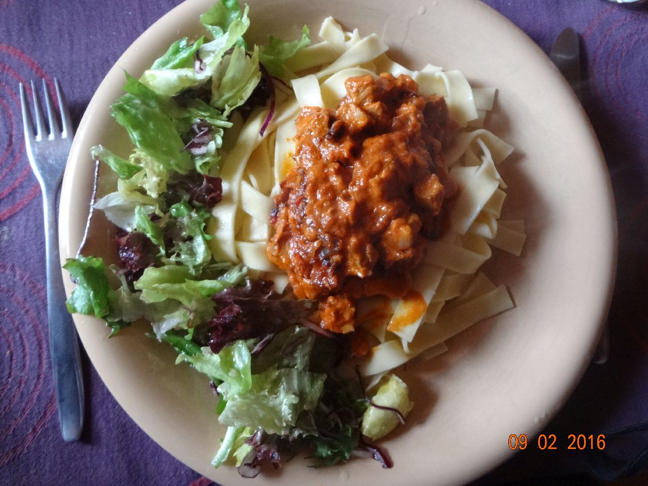 | | Bolognese von Puten-Brust, Landnudeln, Eisbergsalat |