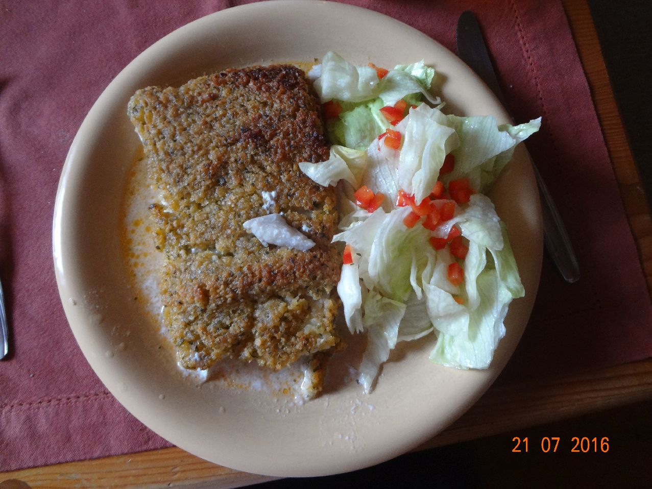 | | Schlemmer-Filet a lá Bordelaise, Eisbergsalat mit Paprika |