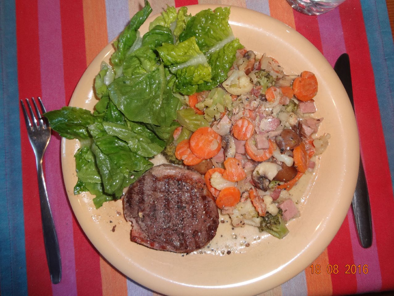 | | Rinder-Filet-Steak mit Blumenkohl, Gemüse-Kart.-Püree |