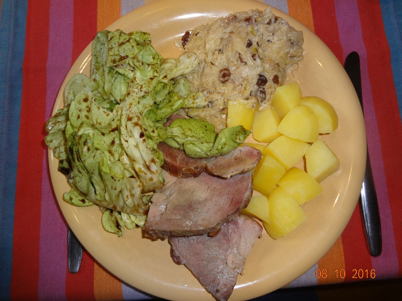 | | Kasseler, Rum-Rosinen-Sauerkraut, Kopfsalat |
