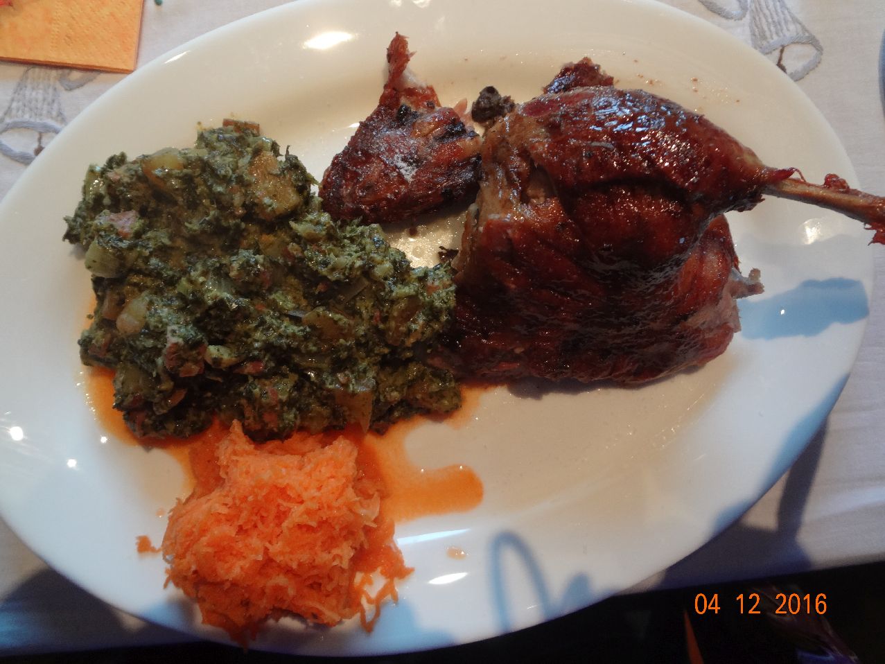 | | Frische Ente aus der Region, Grünkohl, Möhrensalat |