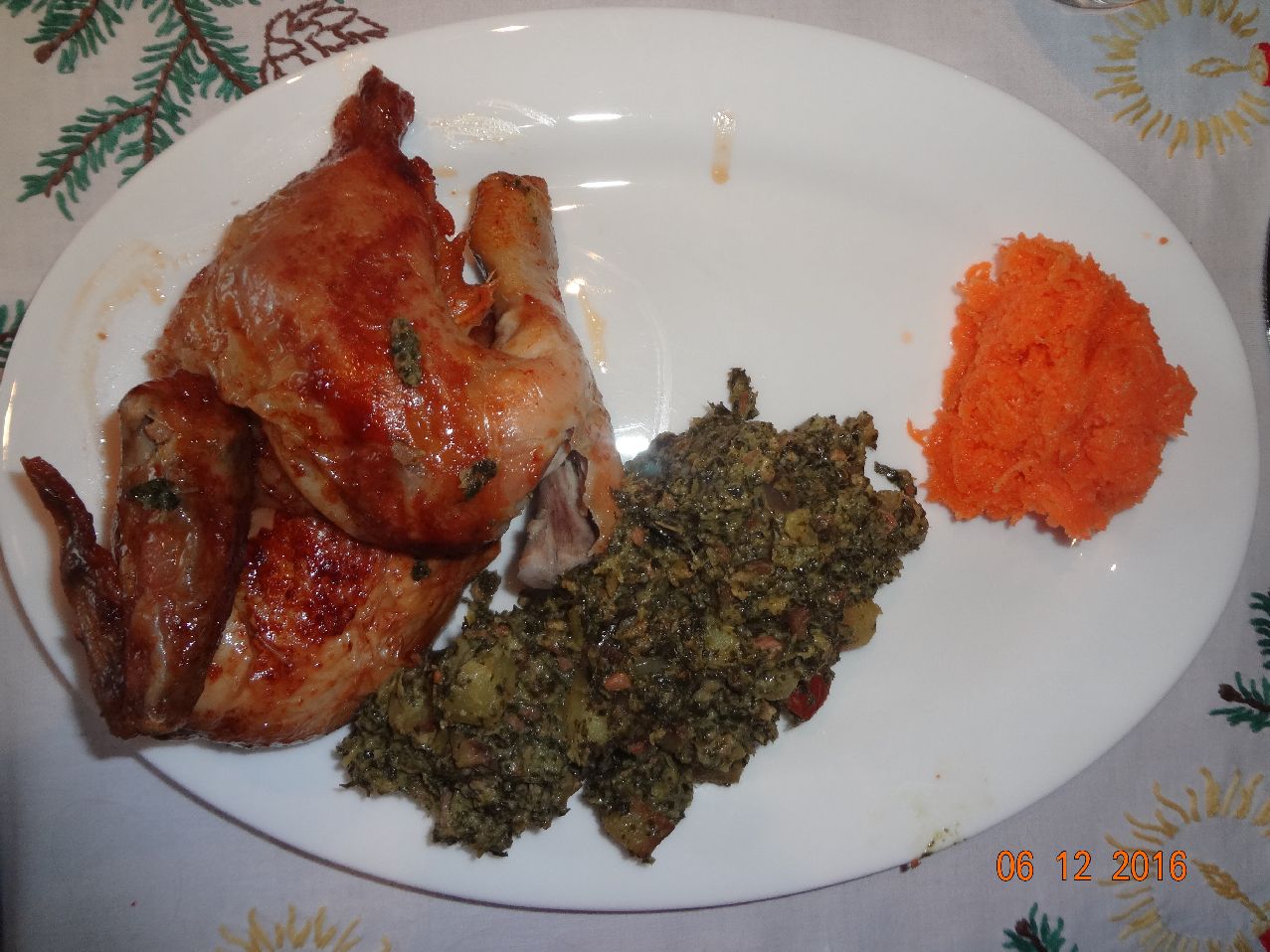 | | Grill-Hähnchen mit Kasseler-Grünkohl, Möhrensalat |