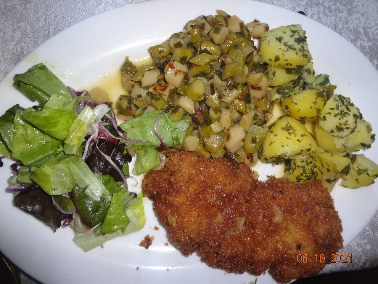 | | Hähnchen-Schnitzel, Spargel-Gemüse, Pet.-Kart., Salatanovo mit Sprossen |