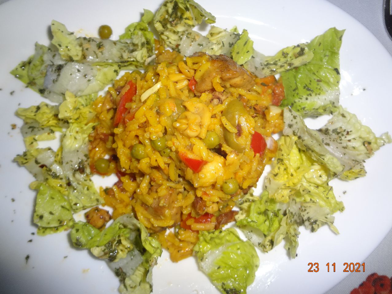 | | Paella, Salatherzen mit Kräutern in Feigen-Balsam |