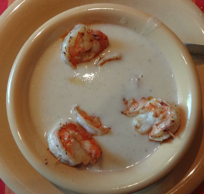 Spargel-Suppe mit gebratenen Riesen-Garnelen