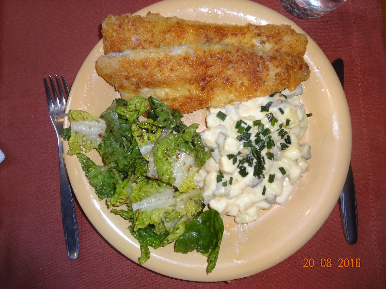 Gebratene Flunder mit selbstgemachtem Kartoffel-Salat, Salat