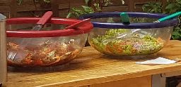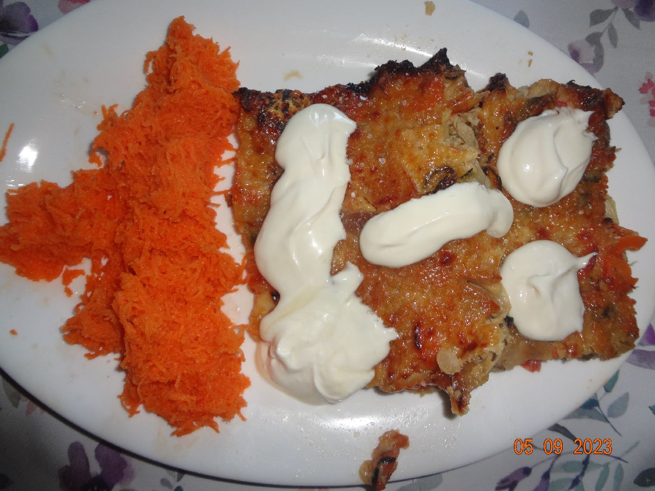 Allerlei-Gemüse-Auflauf mit süßer Creme, Möhrensalat