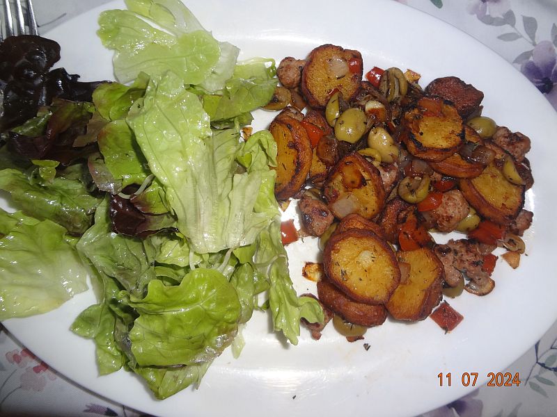 | | Bratkartoffeln italienisch mit Chicolatas, Eichblattsalat mit Sprossen |